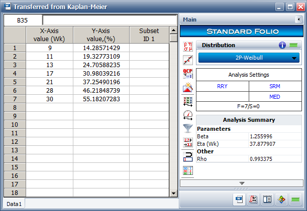 The data will be transferred to a free-form data sheet, where the failure time values will be copied to the “X-Axis value” column and the unreliability values will be copied to the “Y-Axis value” column.