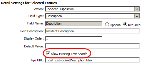 When you create or modify a description or status field in the Details page (Admin > Configure > Details), select the Allow Existing Text Search check box to enable the feature for that field. It will be visible only to uses who have the "Details - Allow Existing Text Search" permission.
