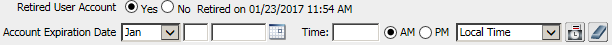 The Retired User Account and Account Expiration Date options in this area will retire the account for entities and the user will have no access to the website. Alternatively, if you want to retire the account only for the current entity, use the options in the entity-specific area.