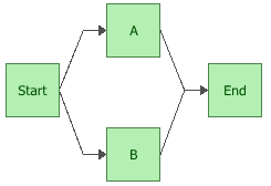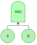 The next two figures show both the fault tree diagram and reliability block diagram representation of a system with two components, A and B, in which the system fails if both A and B fail. In a fault tree, this is modeled using the AND gate.