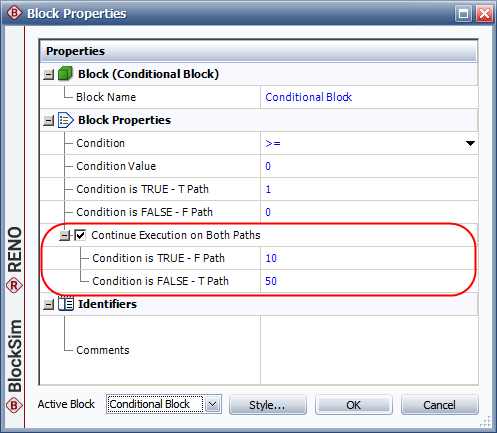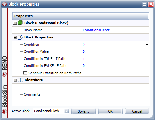 Tip: RENO designates the first connector drawn from a conditional block, binary node or logic gate as the "true" path and the second connector as the "false" path. You can switch these designations by right-clicking the connector and choosing Set to Failure or Set to Success on the shortcut menu.
