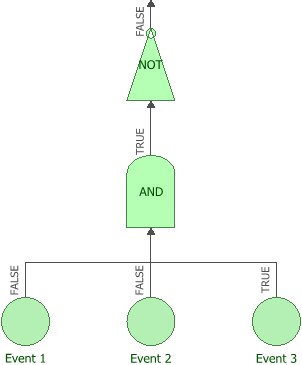 NAND gates are available only in analytical fault trees. There is no equivalent configuration in reliability block diagrams. The inputs to a NOT gate must be fixed probabilities, or evaluate to fixed probabilities; this is checked at analysis, and any input that evaluates to a time-varying model will result in an error, indicated with a flag applied to the gate. Subdiagrams cannot be inputs to NAND gates.