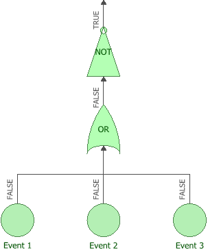 NOR gates are available only in analytical fault trees. There is no equivalent configuration in reliability block diagrams. The inputs to a NOT gate must be fixed probabilities, or evaluate to fixed probabilities; this is checked at analysis, and any input that evaluates to a time-varying model will result in an error, indicated with a flag applied to the gate. Subdiagrams cannot be inputs to NOR gates.