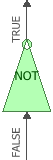 The NOT gate functions as an inverter; the output event is the inverse of the input event. Thus, in cases where you are dealing with true/false values, a false input event will lead to a true output event, and vice versa (i.e., the output occurs when the input event does not occur, and vice versa).