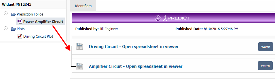 The following example shows two published reports from the Power Amplifier Circuit folio and one published plot.