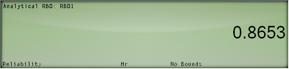 Note: Confidence bounds are available only in cases where all blocks that can fail in the analytical diagram use models that have Fisher matrix bounds. To have Fisher matrix bounds, a model must have been created by publishing from a data source, such as a Weibull++ or ALTA data sheet, that was calculated using Fisher matrix bounds. Additionally, bounds are not available if the diagram has containers, subdiagrams or mirrored blocks, or if any block uses the cumulative damage model.