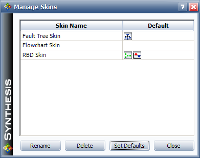 In this window, you can rename or delete existing skins. You can also choose which skin will be used by default for each new diagram you create. To set the defaults, click the Set Defaults button.