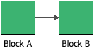 A standard block evaluates a mathematical expression, and then passes the result (output value) of the expression to the next block(s) in the flowchart. For example, the following configuration shows two standard blocks in a flowchart. The direction of the arrow indicates that the output of Block A is passed to Block B.
