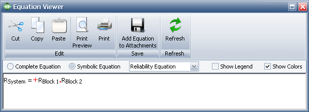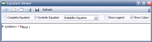 If, however, the two blocks in the RBD belong to the same mirror group, they are actually a single block. The diagram and system reliability equation are shown next.