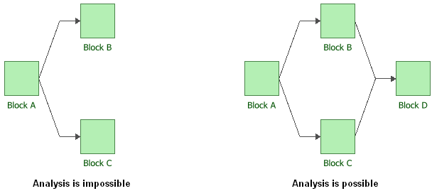 In order to perform analysis, all RBDs created in BlockSim must conform to the following constraints:
