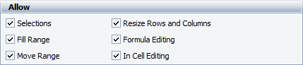| Selections | Prevents users from selecting cells in the spreadsheet. |