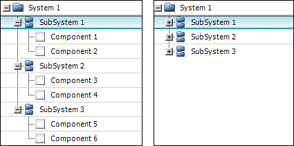 As an example, the following pictures show how the hierarchy collapses to the second (subsystem) level.
