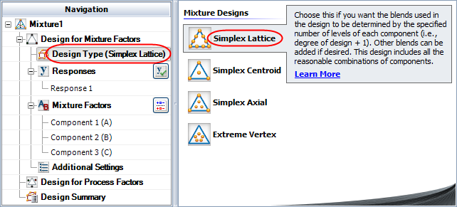 To create a simplex design, follow the steps outlined next. For more general information on building designs, see Building a New Design.