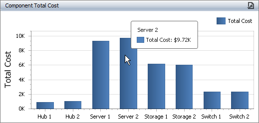 To see more details about the underlying data, move the mouse pointer over a bar or slice. For example, when the pointer is over a bar in a chart, the values for the x and y axes will be displayed in the tooltip.