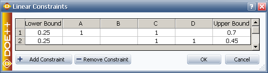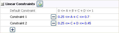 Click the [+] icon under Linear Constraints and enter the linear constraints as shown next.