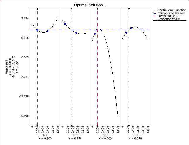 The data set for this example is given in the "Extreme Vertex Design" folio of the example project. After you enter the data from the folio, you can perform the analysis by doing the following: