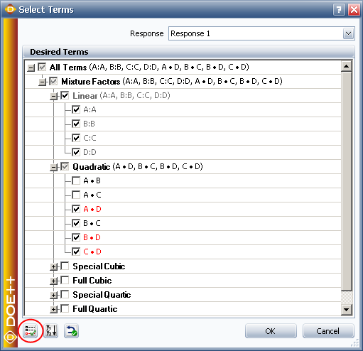 Make sure all terms up to 2-way interactions will be considered. To do this, click the Select Terms icon on the control panel.