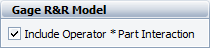 The Gage R&R Model area allows you select whether the analysis model will include terms that represent the interaction between operators and parts. This option is available for crossed designs only.