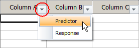 For each column containing data, you must specify whether that column contains predictors (e.g., factor levels) or response data. To do this, click the arrow inside the column header and choose the appropriate option.