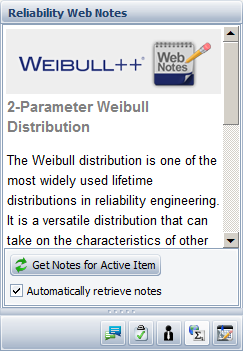 The Reliability Web Notes page in My Portal provides convenient access to theoretical background information for the feature you’re currently working with, including links to related examples, articles and other resources.