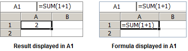 To display the formulas instead of the calculated results in the worksheet cells, choose Formulas > Formula Auditing > Show Formulas.