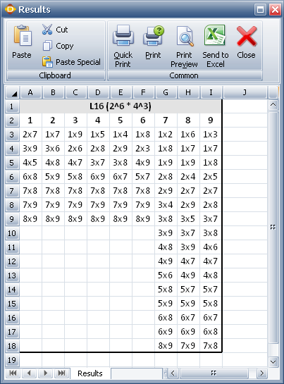 As an example, the L16 (2^6 * 4^3) design uses 16 runs to investigate the main effects of up to 6 two-level factors and up to 3 four-level factors. The alias table for this design is shown next.