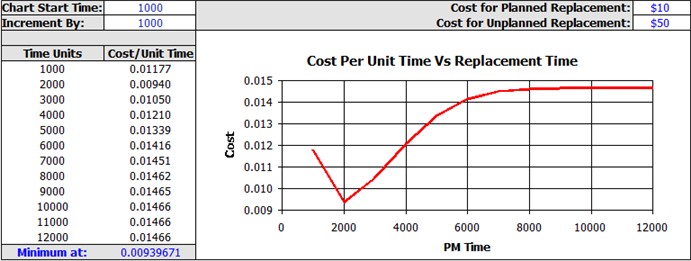 Charts often make it easier to understand large quantities of data and the relationship between different series of data. You can use the Chart Wizard and Chart Designer tools to insert and customize charts in spreadsheet utilities (e.g., analysis workbooks and general spreadsheets). These charts can be placed anywhere in the spreadsheet, and are dynamic (automatically update when the data used to create the chart is changed). In the example below, the report contains an X Y (scatter) plot showing the best time for preventive maintenance.