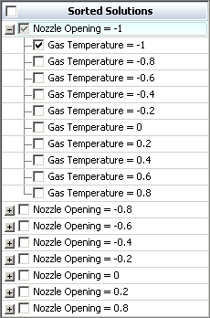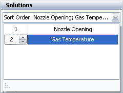 This results in the following sorted list, where solutions are sorted by Gas Temperature within Nozzle Opening settings: