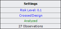 To configure the settings used in the analysis, click the blue text. The risk level and design type settings are accessible on the Analysis Settings page of the control panel.