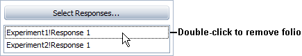 Select Responses opens the Select Folio Response(s) window, which allows you to select any of the responses that have been analyzed in a design folio. The data set for that response analysis will be included in the overlay plot, and the folio/response will be listed on the control panel. If you double-click a folio listed on the control panel, it will be removed from the overlay plot.