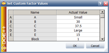 In this example, when the plot calculates the response for Factor A, it will do so while assuming that Factor B = 30, Factor C = 37.5, and so on.