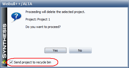 Whenever you delete a project from a database, a confirmation window like the one shown next will appear.