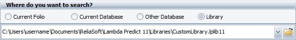 Note: It is strongly suggested that you save your component data to your own custom libraries, rather than making additions to the libraries that are installed with Lambda Predict. Personal data entered in the installed libraries will be lost if the software is reinstalled or if the libraries are updated in subsequent releases.