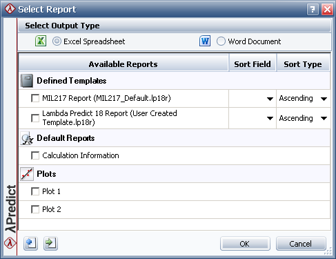 In Lambda Predict, you can create template-based reports that summarize the key results of your analyses. Each reliability prediction standard that is included in your license comes with a basic report template. If desired, you can customize the appearance of the basic report templates, as well as manage and build your own custom report templates. (See Creating and Editing Report Templates.)