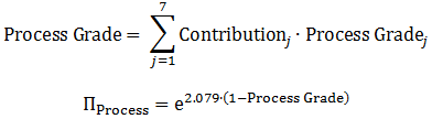 Use the process contribution weights to calculate an overall grade for the entire process. The calculation is as follows: