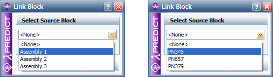 When you create a new linked block (or double-click an existing one), the Link Block windows allows you to view/select the source that it represents. The source for a linked block can be any standard item (i.e.,