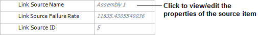 The source and failure rate for a linked block will also be identified in the Properties panel, as shown next. If you click the Link Source Name (which is a hyperlink), the source item will be selected automatically so you can view/edit its properties.