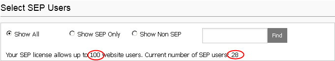 Click the SEP Admin link in the top-right corner of the website and then use the Select SEP Users section to specify which user accounts will have website access.