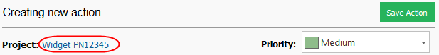 If you want to create the action in a different project, click the link in the header, as shown below, to go to the Project Summary page, and then use the Change Project button to select a different project.