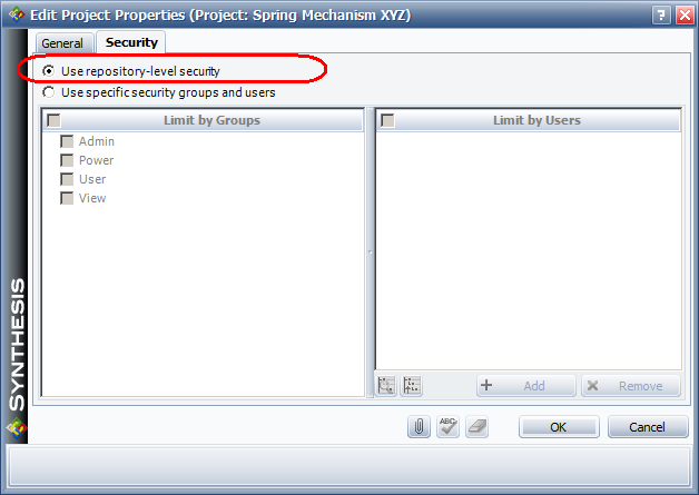 1. User Accounts and Security Groups: Assign each user account to an appropriate security group. This can be one of the four security groups that are created by default in each new Synthesis repository — Admin, Power, User (Read/Write) or View (Read-Only) — or you can configure new or existing security groups to meet your particular needs.