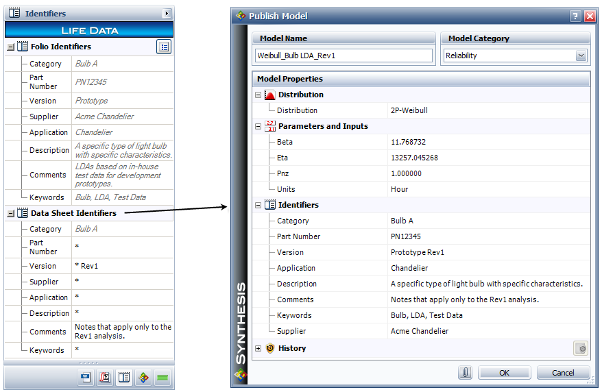 For published models, the identifiers are obtained from the analysis (e.g., Weibull++ folio, BlockSim diagram, etc.). To make a change, you must first edit the identifiers for the analysis and then republish the model.