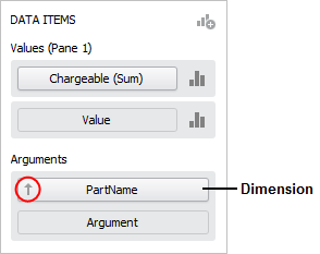 Dimension, argument and/or series bars in the DATA ITEMS panel.
