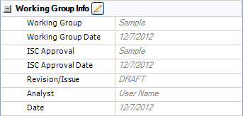 Use the Working Group and Working Group Date fields to enter the working group name and the date they are working on the project.