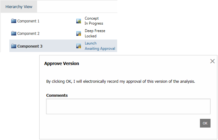 If you are an assigned approver for the current version and it is ready for you to review and approve, this is a link (blue text) that opens a window where you can electronically record your approval.
