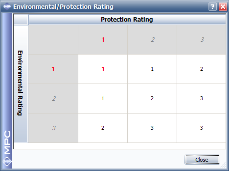 The Environmental/Protection rating is based on a scoring matrix that considers the Environmental rating and Protection rating.