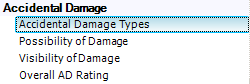 The tree on the left side of the window shows four configurable elements for accidental damage (AD) analysis, as shown next.