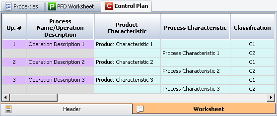 PFD Worksheet allows you to create a new control plan based on an existing PFD worksheet.