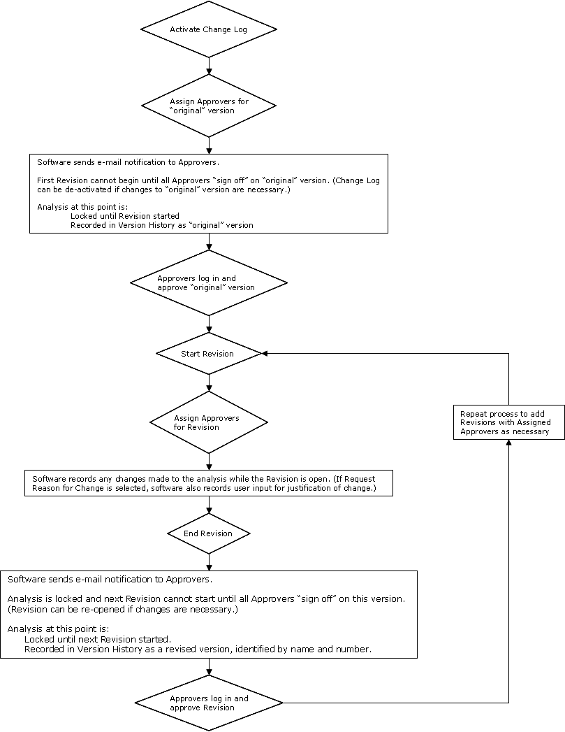 Note that while electronic approval tracking is available only for standard databases with login security enabled and for enterprise databases, it is possible to use both approaches for the same analysis branch when appropriate. In other words, authorized users can assign approvers for specified versions and not others within a single change log, if desired.