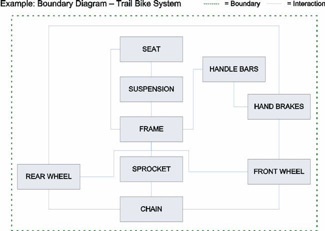 For each individual FMEA that you will perform, it is useful to define what components and interactions will be included in the analysis. A boundary diagram (or block diagram) shows the physical and logical relationships between the components in the system or assembly. It can identify relationships and dependencies between components as well as critical inputs and outputs.