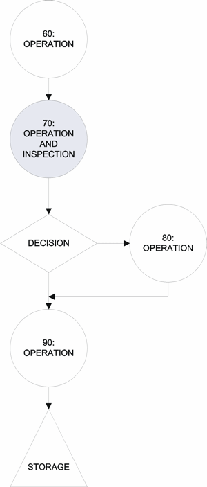 The process flow diagram (PFD) provides a logical, visual depiction of the process that is being analyzed. The diagram typically uses specific symbols to describe different types of activities (e.g., operation, decision, inspection, storage, etc.). It also may include an identification of the product or process characteristics that need to be monitored at each step (e.g., temperature of the oven, thickness of the wax, diameter of the hole, etc.) and the possible sources of variation (e.g., incorrect setup, contamination, machine maintenance, etc.). Such diagrams can be useful to determine the steps in the process that will be analyzed in the PFMEA and to determine the functions and critical characteristics that will be considered in the analysis.